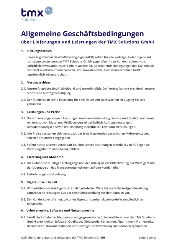Allgemeine Geschäftsbedingungen (AGB) der TMX Solutions GmbH